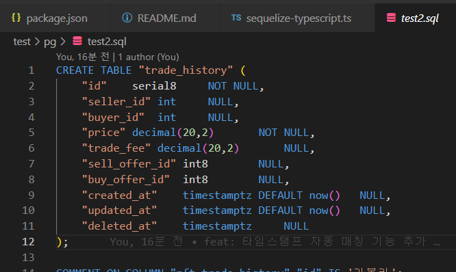 원래 잘 쓰지 않던 sequelize-typescript에서 컬럼명이 잘못 들어가는 문제 수정했고,