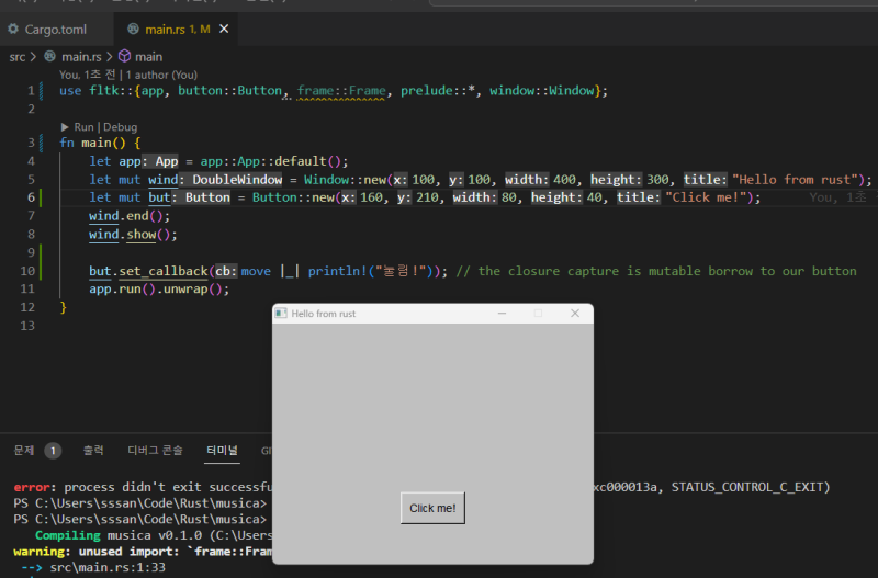 but.set_callback(move |_| println!("๋๋ฆผ!")); // the closure capture is mutable borrow to our button