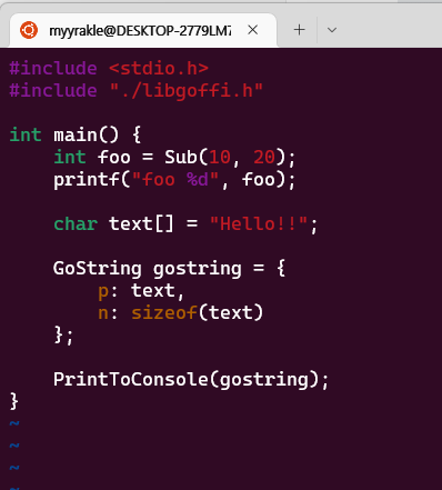 go build -o libgoffi.so -buildmode=c-shared go/main.go // Linux