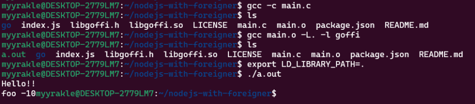 gcc main.o -L. -l goffi