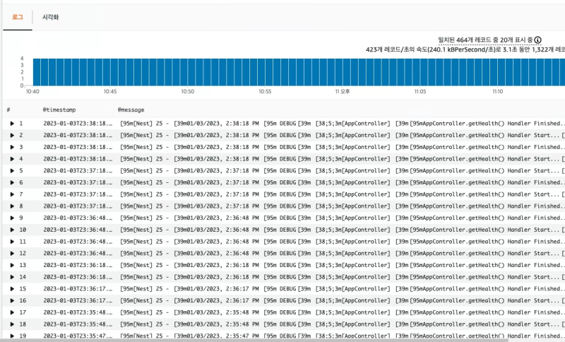 fields๊ฐ ์กฐํํ ํญ๋ชฉ, ์๊ฐ๊ณผ ๋ก๊ทธ ํ