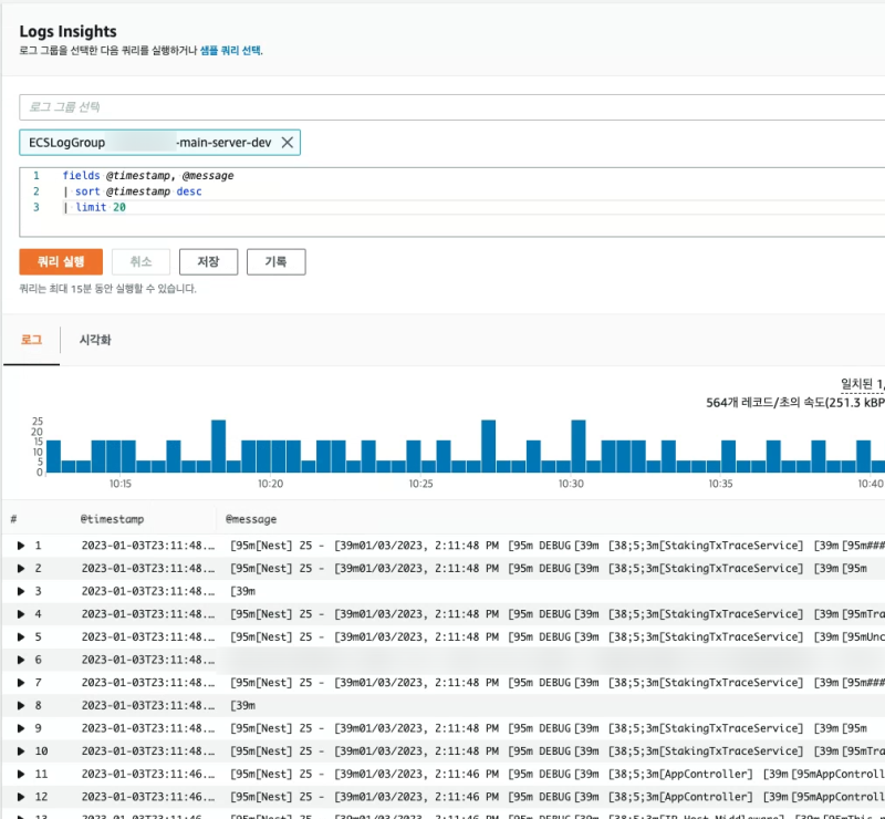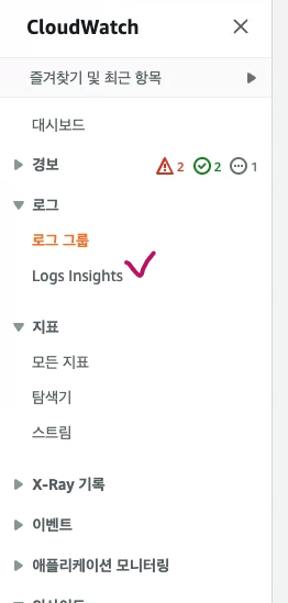 cloudwatch์ Log Insight ํญ์ผ๋ก ์ด๋ํ๋ค.