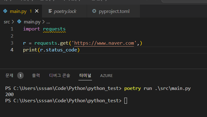 poetry run에 실행시킬 소스코드를 지정해주면 된다.