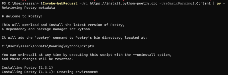 (Invoke-WebRequest -Uri https://install.python-poetry.org -UseBasicParsing).Content | py -