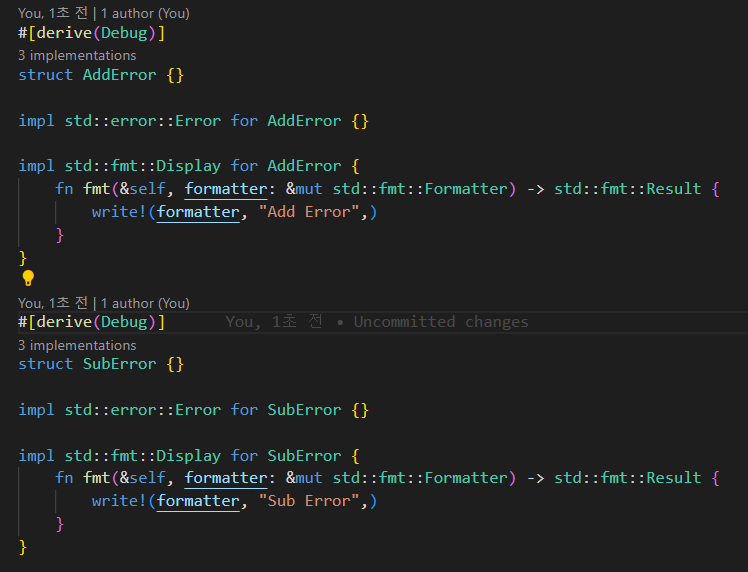 그리고 기존의 오류타입 정의를 다 제거하고, 전체 enum 오류의 variant로 정의를 하면 된다.