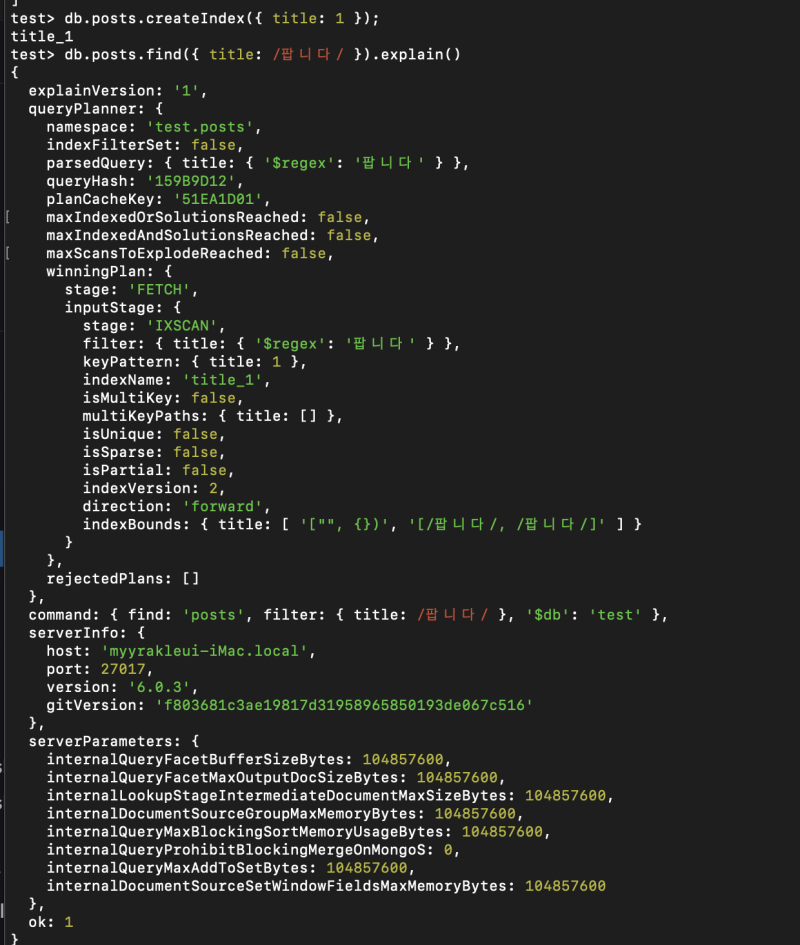RDB들과는 다르게 와일드카드를 붙여서 돌려도 인덱싱을 꽤 잘 해준다.
