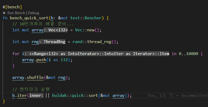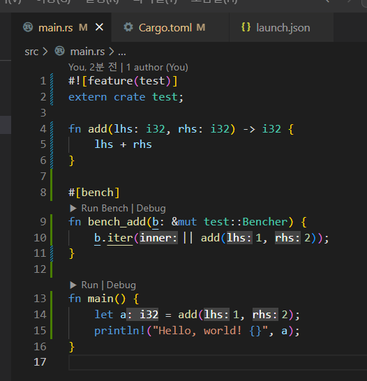 ์ ์ ๋๋ก ๋ง์ถฐ์ค์ผ ํ๊ณ , #[bench] ๋งคํฌ๋ก๋ฅผ ๋ฌ์์ค์ผ ํ๋ค.