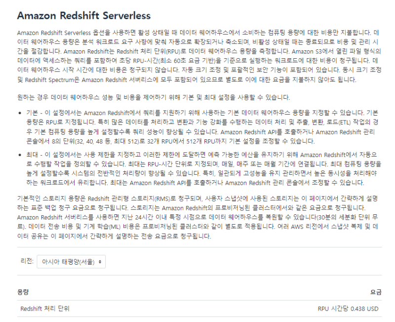 https://aws.amazon.com/ko/redshift/pricing/