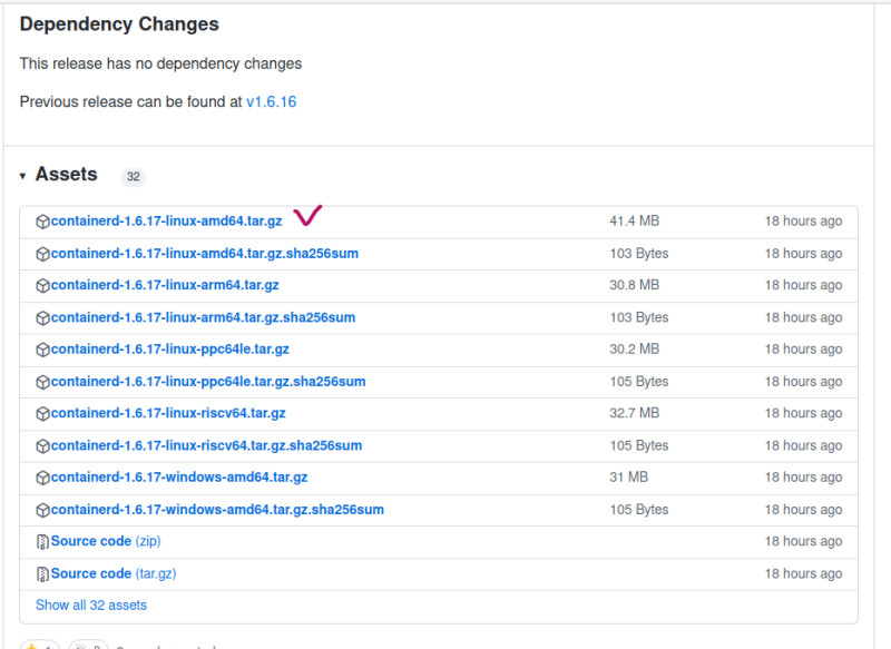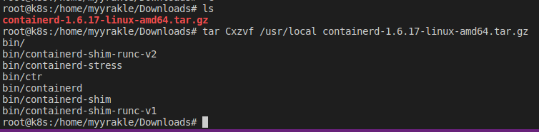 tar Cxzvf /usr/local containerd-1.6.17-linux-amd64.tar.gz