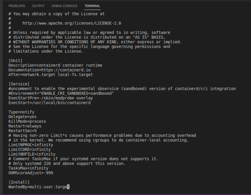 sudo vi /usr/local/lib/systemd/system/containerd.service