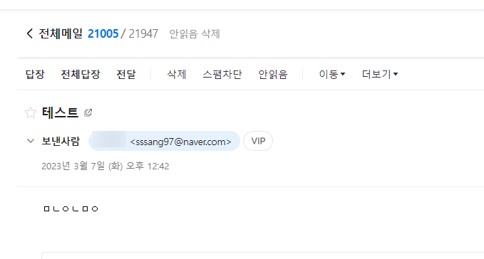 저러면 "email@tokkitang.com" 주소로 보내면 sssang97@naver.com 주소로 전달해주는 것이다.