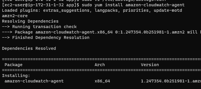 sudo vi /opt/aws/amazon-cloudwatch-agent/etc/amazon-cloudwatch-agent.json{