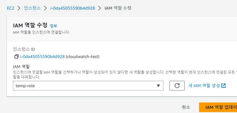 ํ๋ก๊ทธ๋จ์ด cloudwatch์ ์ ๊ทผ์ ํ ์ ์๊ฒ ํ๋ ค๋ฉด, ์๋ ๊ถํ์ ์ค์ผ ํ๋ค.
