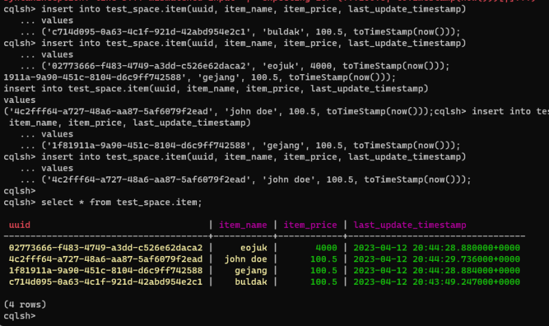 insert into test_space.item(uuid, item_name, item_price, last_update_timestamp)