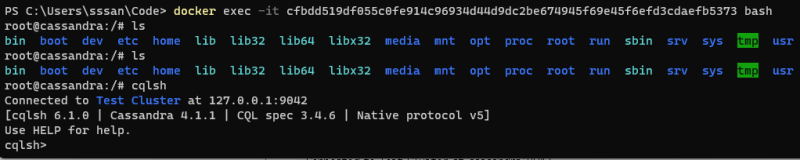 ๊ทธ๋ฆฌ๊ณ ์ ์ปจํ ์ด๋์ ์ ์ํด์ cqlsh๋ฅผ ์คํํ๋ฉด, ๋ฐ๋ก ๋ํํ ์์ด ์ด๋ฆฐ๋ค.