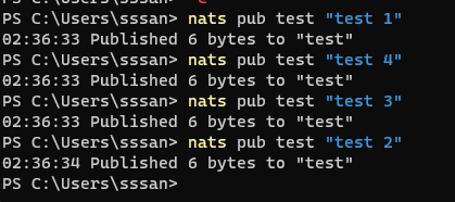 nats pub test "test 4"