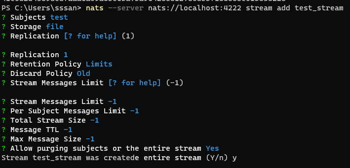 nats --server nats://localhost:4222 stream add test_stream