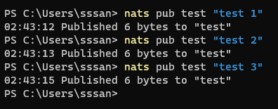 nats pub test "test 3"