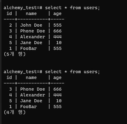 ์๋ ์ฝ๋๋ age๊ฐ 555, 666, 777์ธ ๋ฐ์ดํฐ๋ฅผ ์ ๋ถ selectํด์ค๋ ์ฝ๋๋ค.