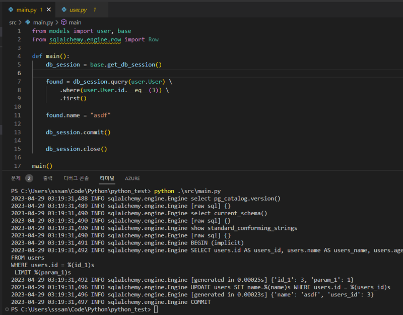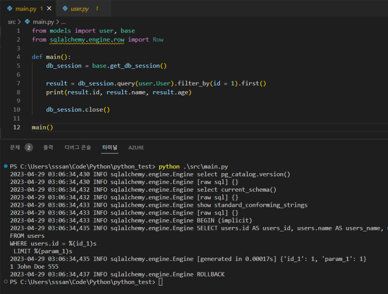SQLAlchemy๋ ํ์ด์ฌ ํ๊ฒฝ์์ ๊ฐ์ฅ ๋ง์ด ์ฌ์ฉ๋๋ ORM ๋ผ์ด๋ธ๋ฌ๋ฆฌ๋ค.
