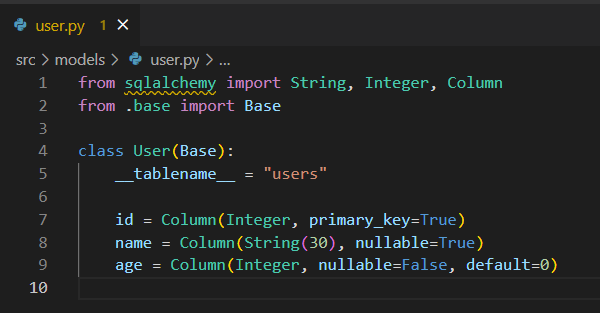 Base๋ฅผ ์์๋ฐ๊ณ , __tablename__์ผ๋ก ํ