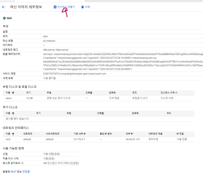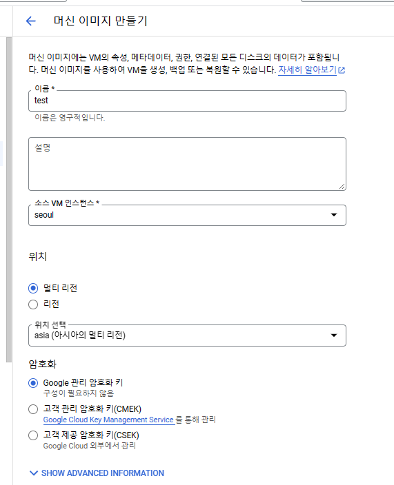 머신 이미지는 compute engine을 도커 이미지처럼 박제해놓고 재사용할 수 있게 해주는 기능이다.