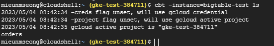 bigtable์ cbt๋ผ๋ ์ ์ฉ CLI ๋๊ตฌ๋ฅผ ์ง์ํ๋ค.