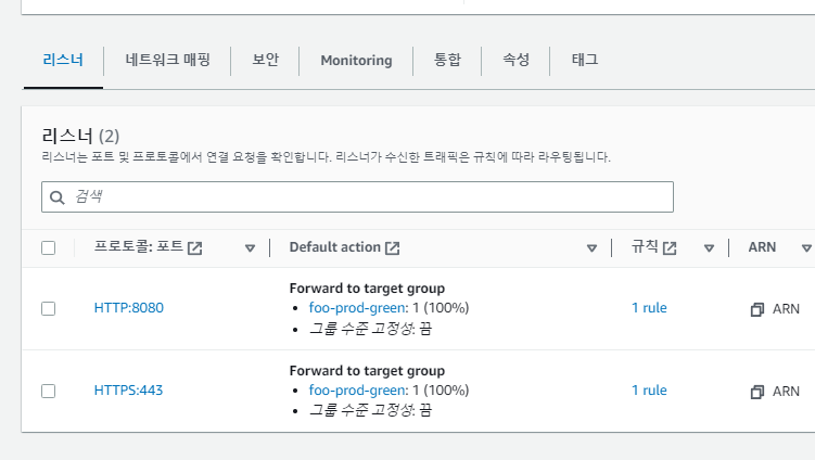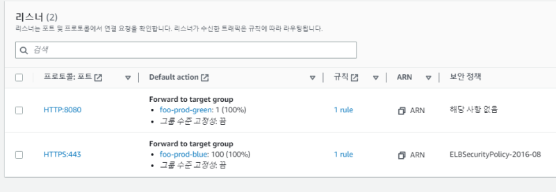 ํ์๋ฒ์งธ ๋ฐฐํฌํ ๋๋ blue๋ก ๋ฐฐํฌํ๊ณ , ์ง์๋ฒ์งธ ๋ฐฐํฌํ ๋๋ green์ผ๋ก ๋ฐฐํฌํ๋ฉด์, ๋ก๋๋ฐธ๋ฐ์ ๋ฆฌ์ค๋๋ง ๋์ ๋ง๋ target group์ ๊ฐ๋ฆฌํค๊ฒ ์ค์์นญํ๋ ๊ฒ์ด๋ค.