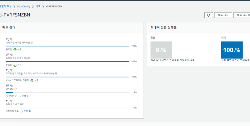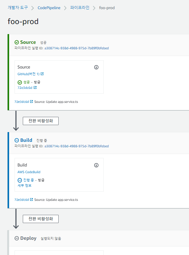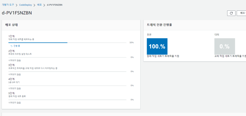 ๊ทธ๋ฆฌ๊ณ codepipeline์ deploy ์คํ ์ ์์ ํ๋ค.