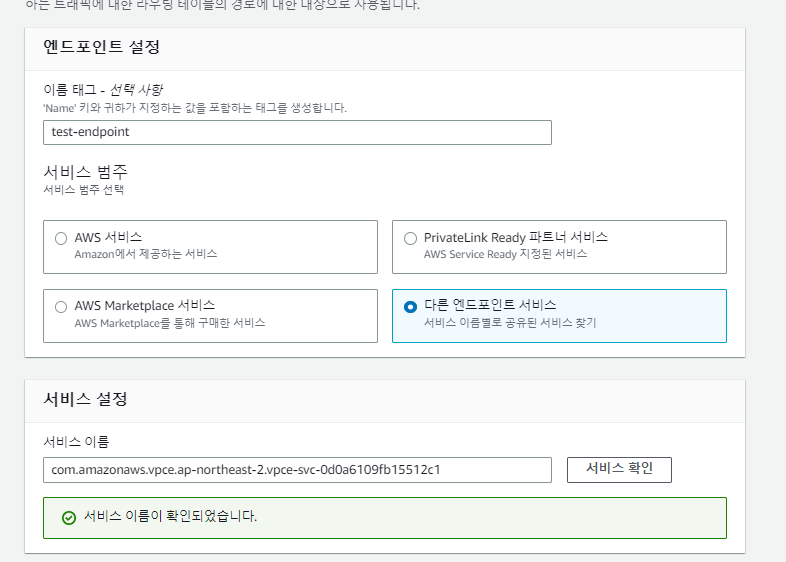 ์ด๊ฑด server๋น ํ๋์ฉ๋ง ๋ง๋ค๋ฉด ๋๊ณ , ์ฐ๊ฒฐํ client๋ง๋ค "VPC ์๋ํฌ์ธํธ"๋ฅผ ๊ฐ๊ฐ ํ๋์ฉ ๋ง๋ค์ด์ฃผ๋ ํํ๋ค.