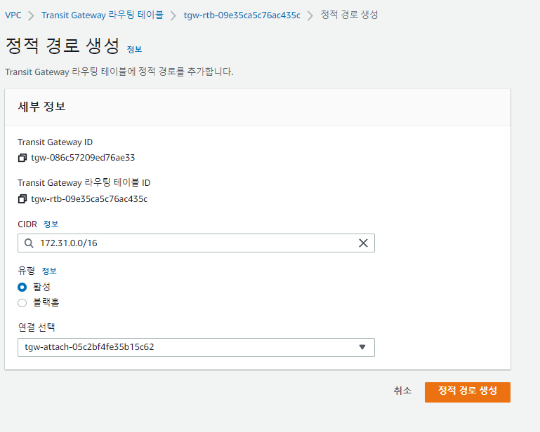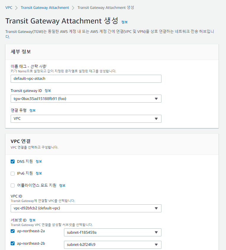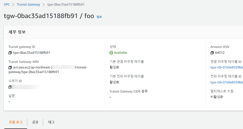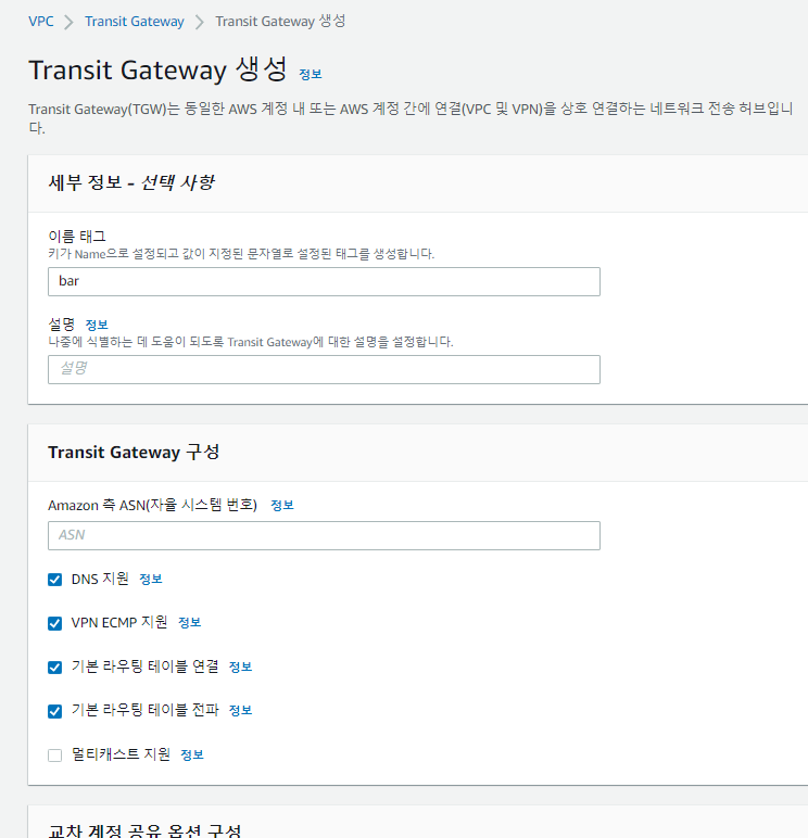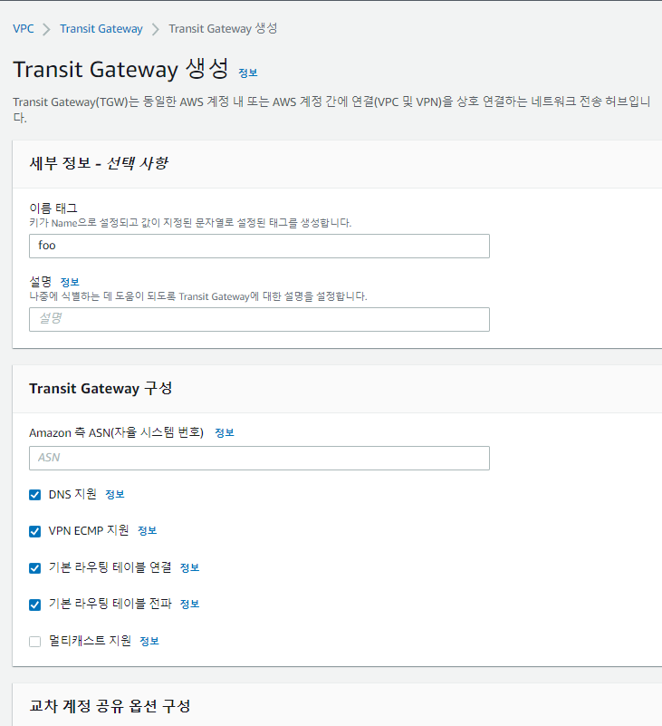 Transit Gateway ๋ง๋ค๊ธฐ