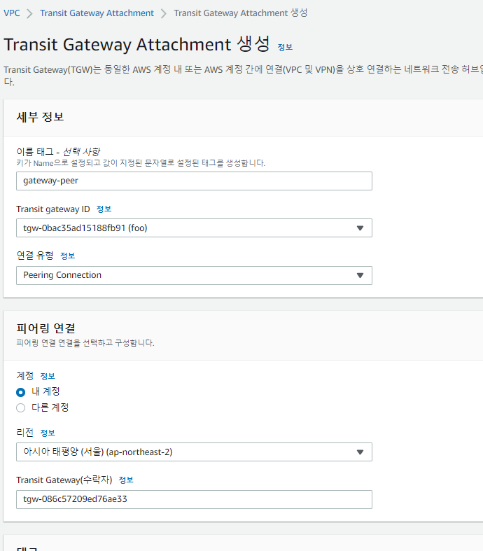 https://docs.aws.amazon.com/ko_kr/vpc/latest/tgw/tgw-peering.html
