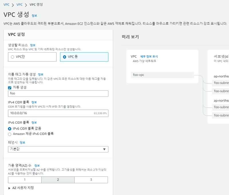 ์๋๊ฑด ๋๊ณ vpc๋ฅผ ํ๋ ๋ ํ์ ๊ตฌ์ฑํ๋ค.