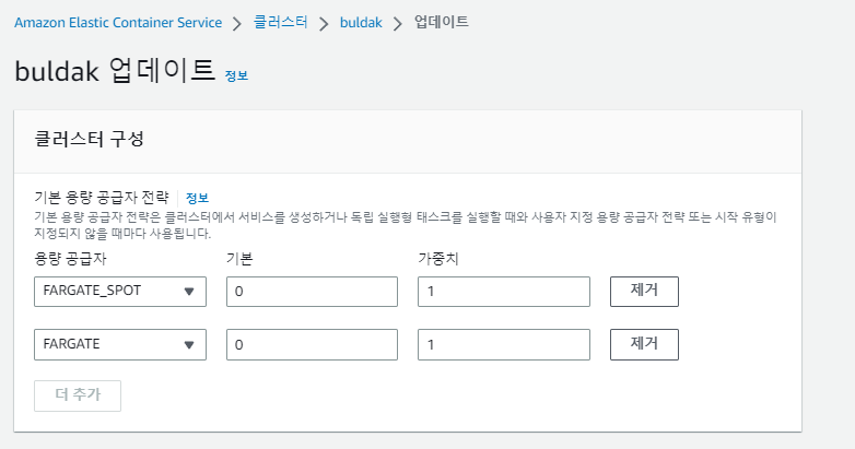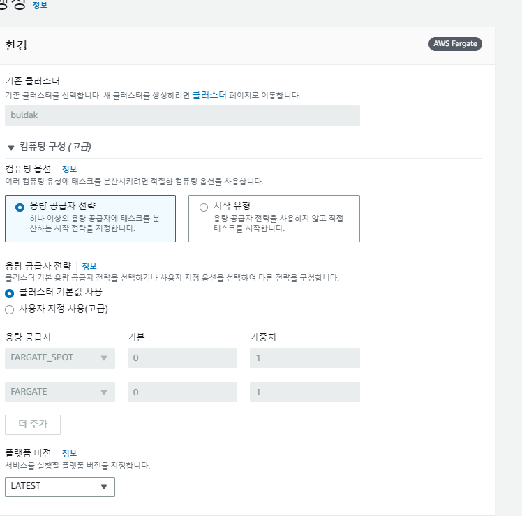 ๋ถํฐ Fargate์ Spot ์๊ธ์ ๋ฅผ ์ถ๊ฐํ๋ค.