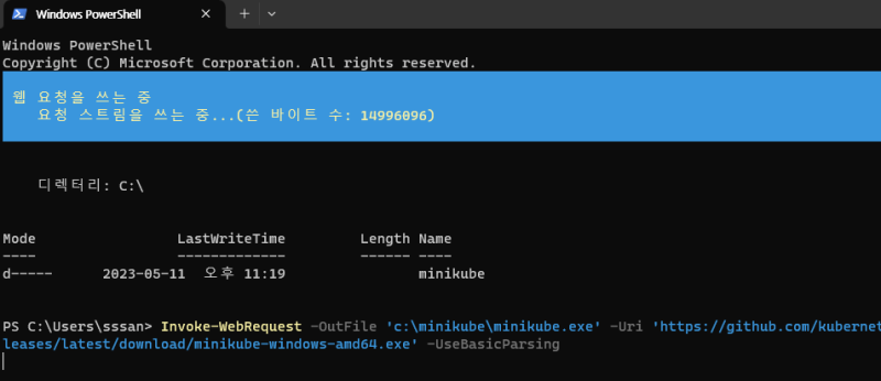 Invoke-WebRequest -OutFile 'c:\minikube\minikube.exe' -Uri 'https://github.com/kubernetes/minikube/releases/latest/download/minikube-windows-amd64.exe' -UseBasicParsing