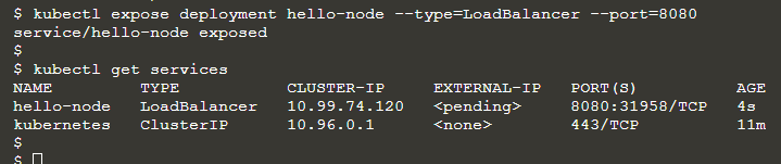 kubectl expose deployment hello-node --type=LoadBalancer --port=8080