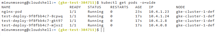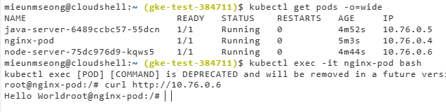 nginx-pod์ ๋ค์ด๊ฐ๋ฉด ๋๋จธ์ง test-deploy pod๋ค์ ๋ํด์๋ ์์ฒญ์ ์๊ณ ์๋ต์ ๋ฐ์๋ณผ ์ ์๋ ๊ฒ์ด๋ค.