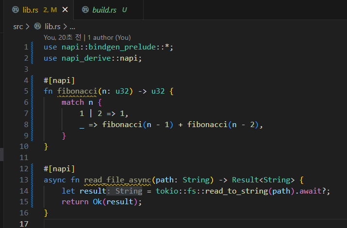 그리고 lib.rs에 필요한 함수들을 구현해서, napi 매크로만 붙여주면 끝이다.