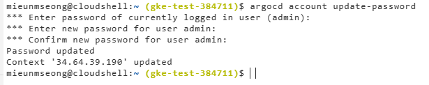 argocd ์ฝ์์ ๋ก๊ทธ์ธํ ์ ์๋ ๊ณ์ ๊ณผ ํจ์ค์๋๋ฅผ ๋ง๋ค์ด์ค์ผ ํ๋ค.