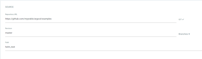 이전과 동일하게 git으로 source를 가져온다. Path는 helm chart가 위치한 경로여야 한다.
