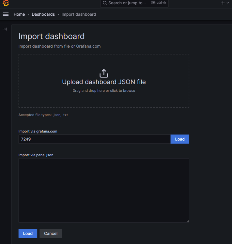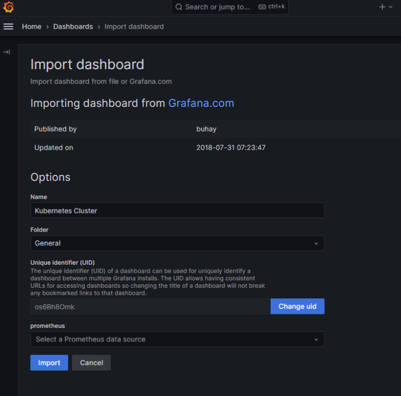 https://grafana.com/grafana/dashboards/7249-kubernetes-cluster/