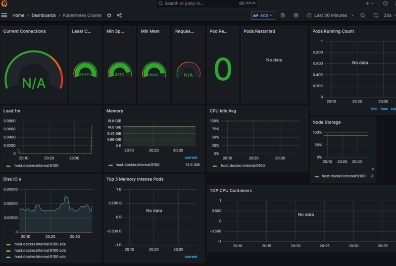 내 테스트 환경이 k8s가 아니라 통짜 도커라 비어있는 지표가 약간 있다.