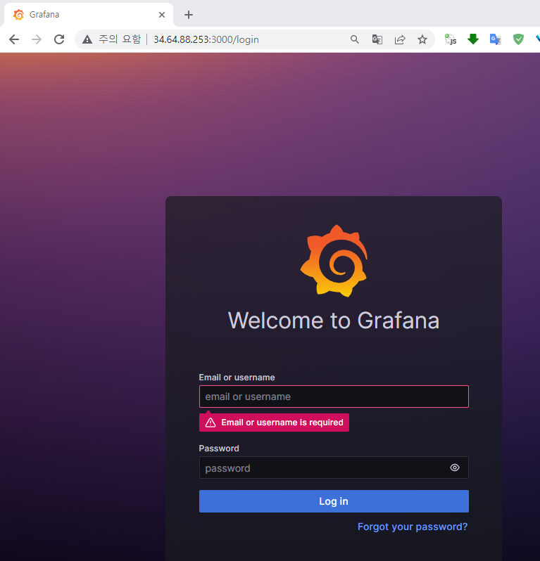 그러면 저 grafana 3000 포트를 사용해서 접속을 할 수 있다.