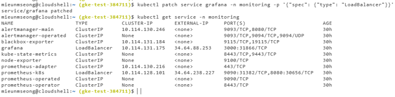 kubectl patch service grafana -n monitoring -p '{"spec": {"type": "LoadBalancer"}}'