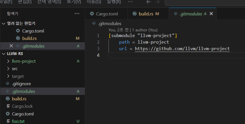 ๋ง์ฝ llvm ํ๋ก์ ํธ๋ฅผ ๋ชจ๋๋ก์ ์ถ๊ฐํ๊ณ ์ถ๋ค๋ฉด, ์๋์ ๊ฐ์ด ๊ทธ github ๋งํฌ๋ฅผ ๋ฐ์์ฃผ๋ฉด ๋๋ ๊ฒ์ด๋ค.