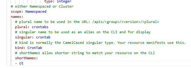 # plural name to be used in the URL: /apis/<group>/<version>/<plural>