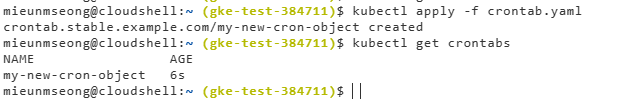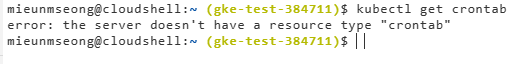 ์ด๋ฆ์ด crontab์ด๋ kubect get crontab์ผ๋ก ๋ฆฌ์์ค๋ฅผ ์กฐํํ ์ ์๊ณ ,