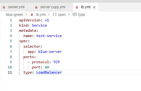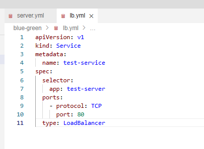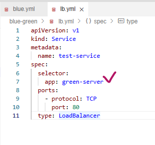 그리고 서비스에서 셀렉터를 바꿔주는 것으로 배포 교체를 수행할 것이다.
