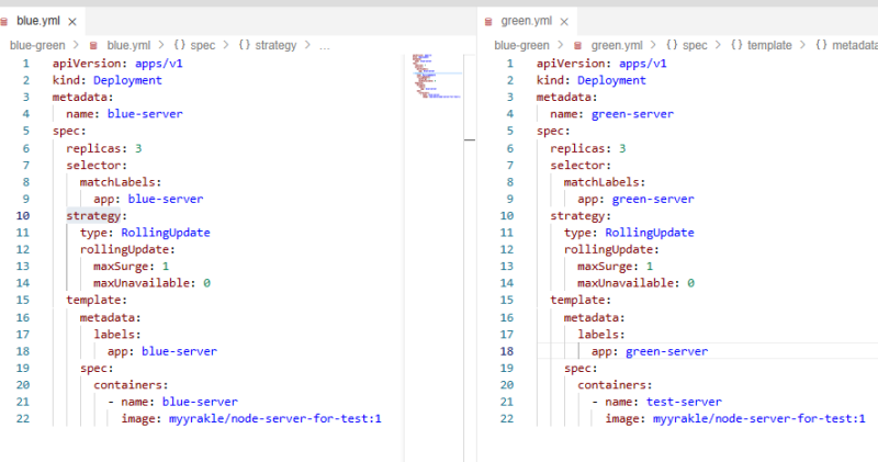 이걸 blue와 그린 2개의 Deployment로 분리해야한다.