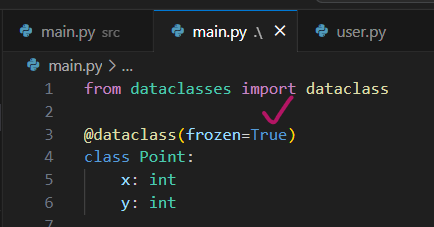 dataclass의 또 하나의 유용한 기능은 불변성 부여가 가능하다는 것이다.